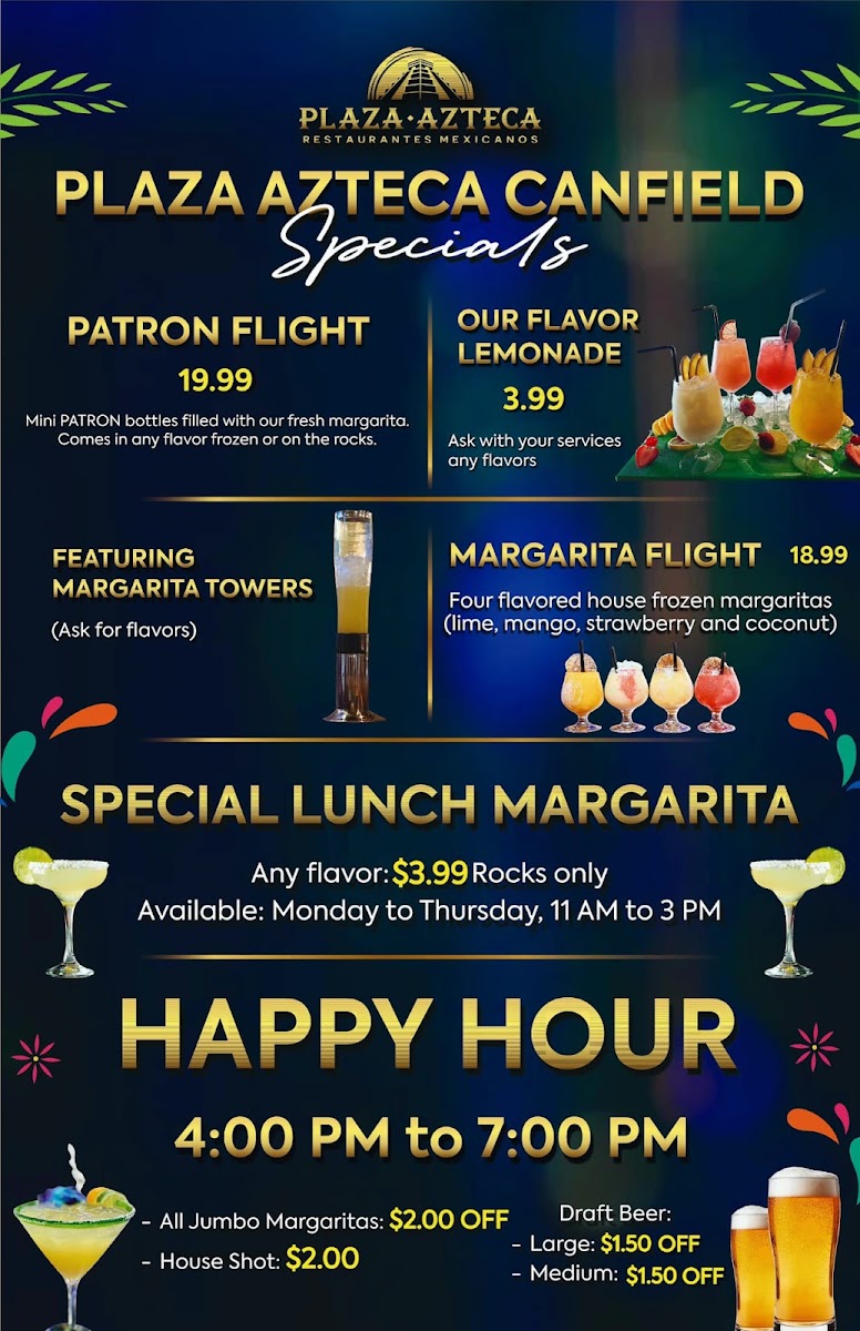 Welcome to Plaza Azteca Canfield, where vibrant flavors and authentic Mexican cuisine take center stage. Nestled on Boardman-Canfield Road, this welcoming eatery is renowned for its generous portions and diverse menu that caters to every palate.